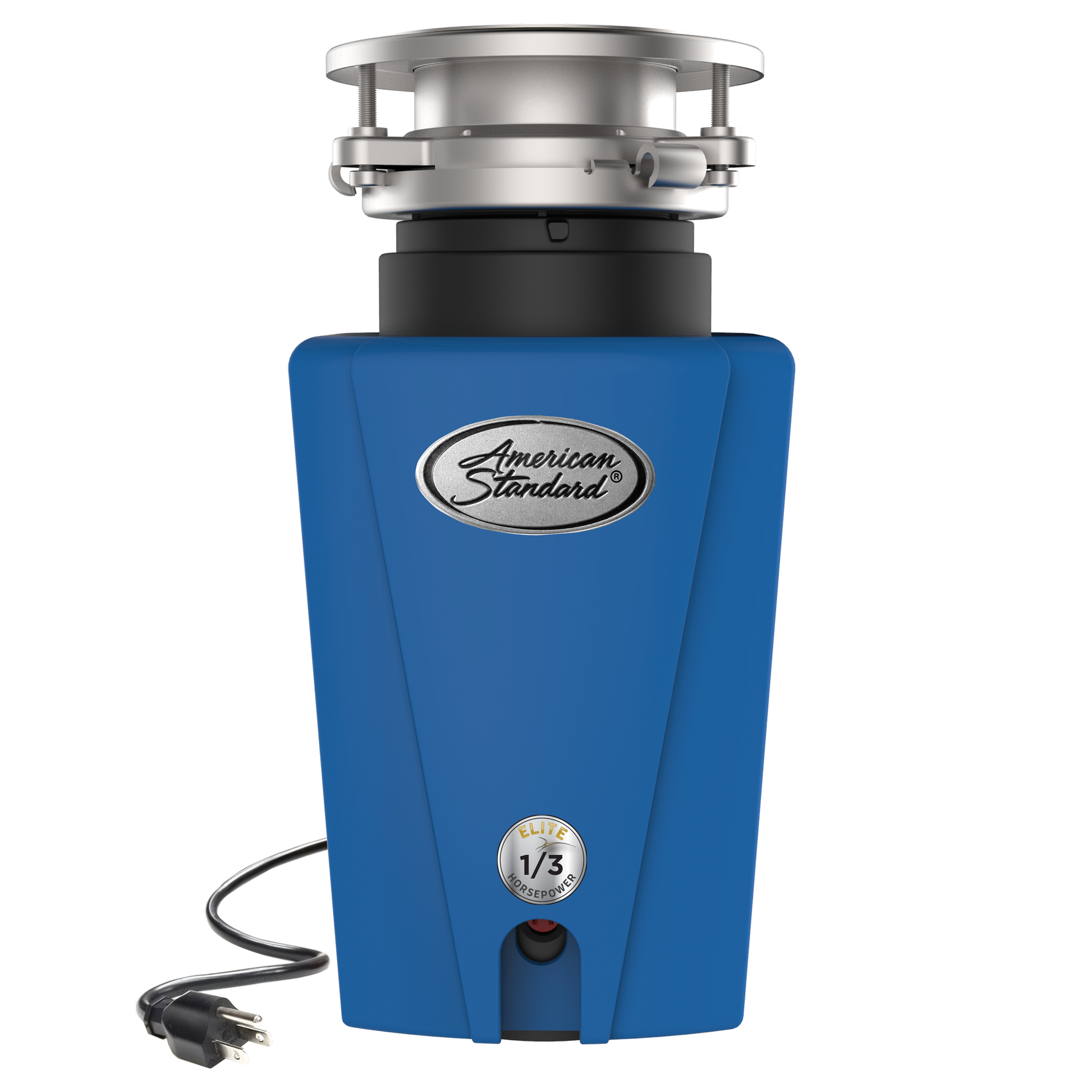 The American Standard Elite 1/3 HP food waste disposer with attached power cord and plug offers a high torque permanent magnet motor and features anti-microbial protection against odor.