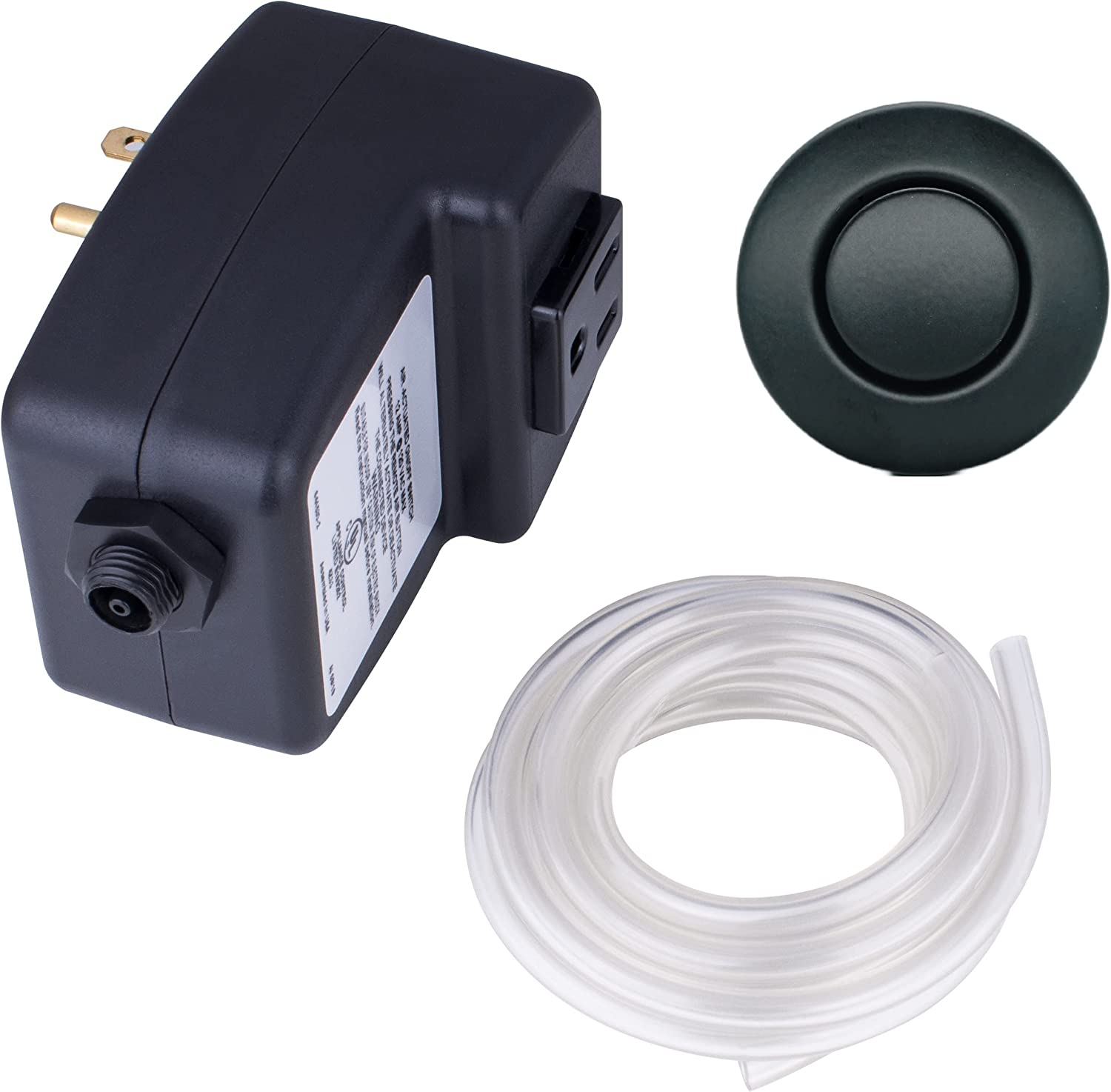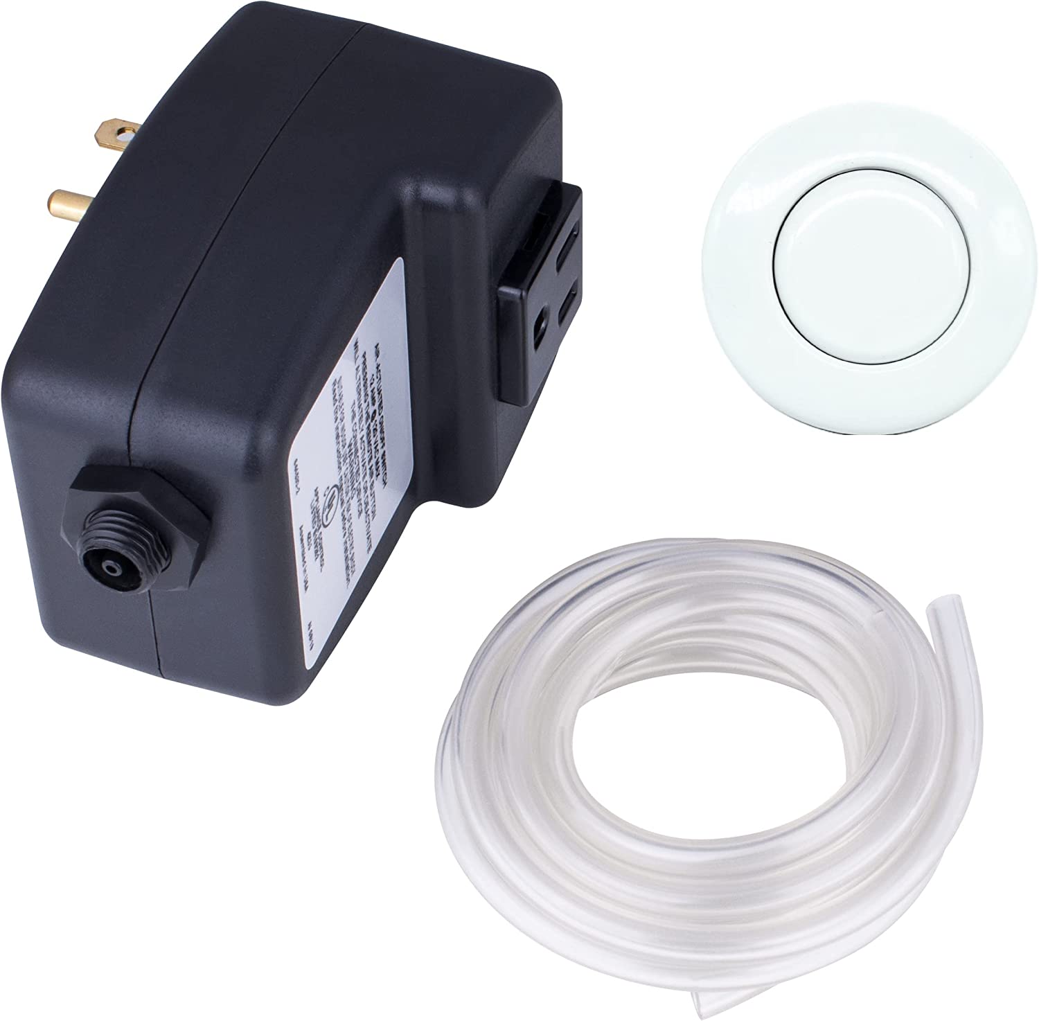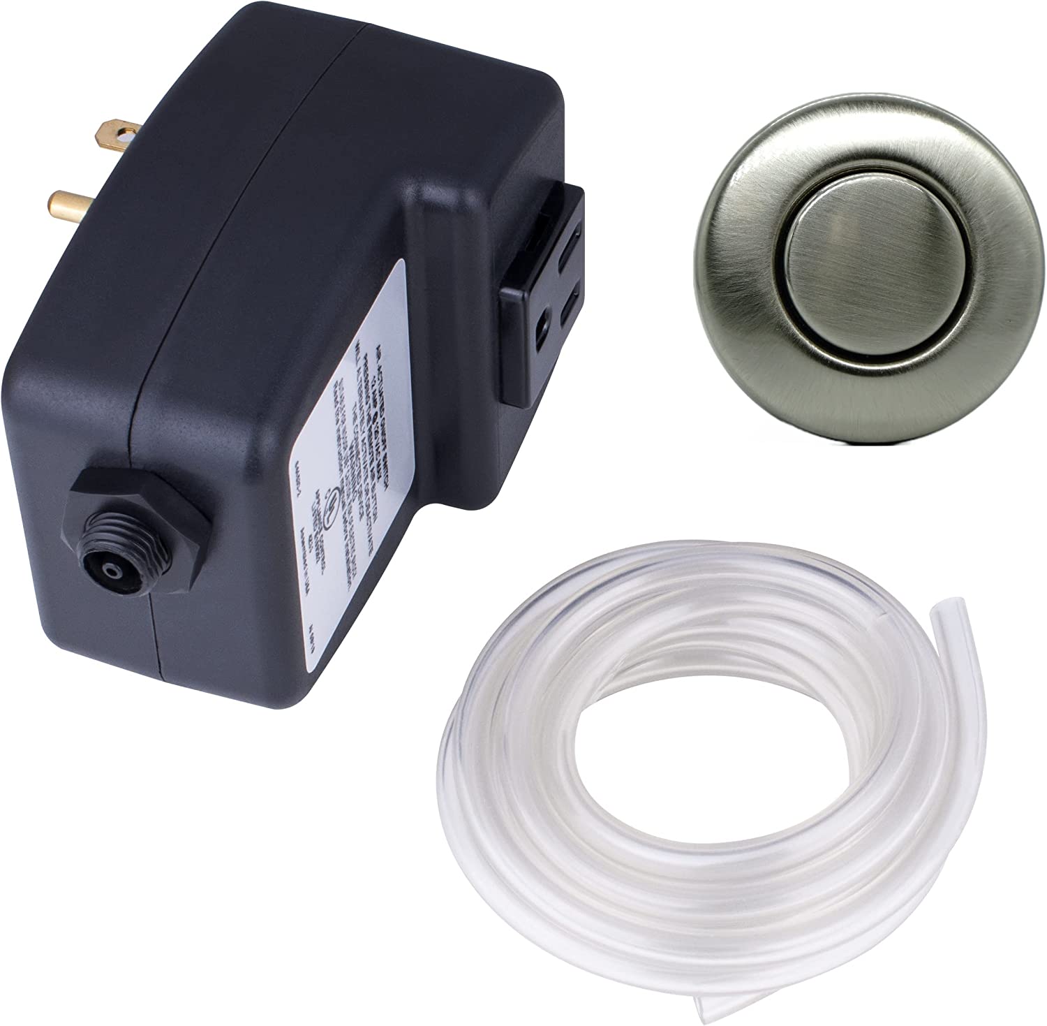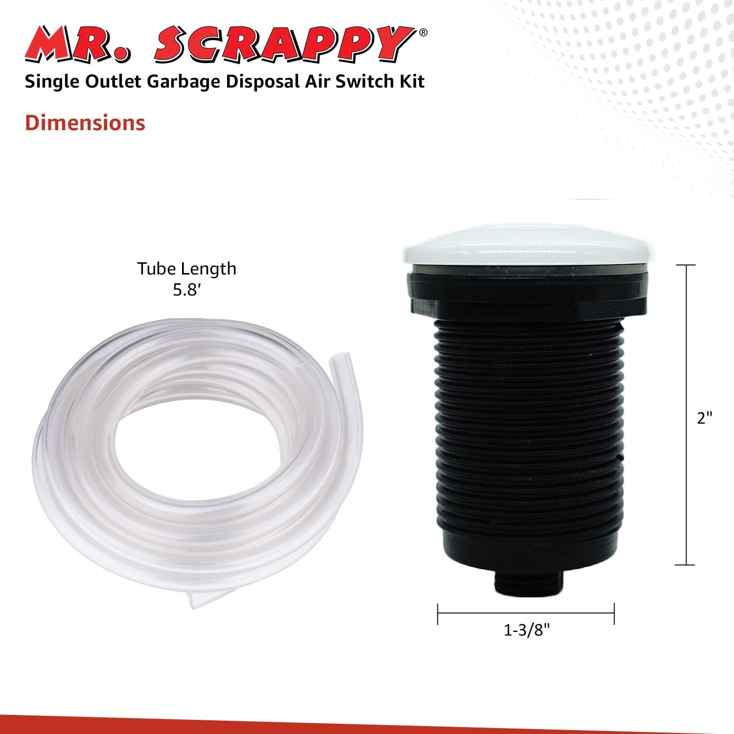 The Mr. Scrappy Garbage Disposer Air Switch is used to operate a food waste disposer. When you press the switch, it sends a burst of air to the module and turns on the disposal that is plugged in to it. It is safe to use with wet hands and works with all food waste disposers with a power cord.
