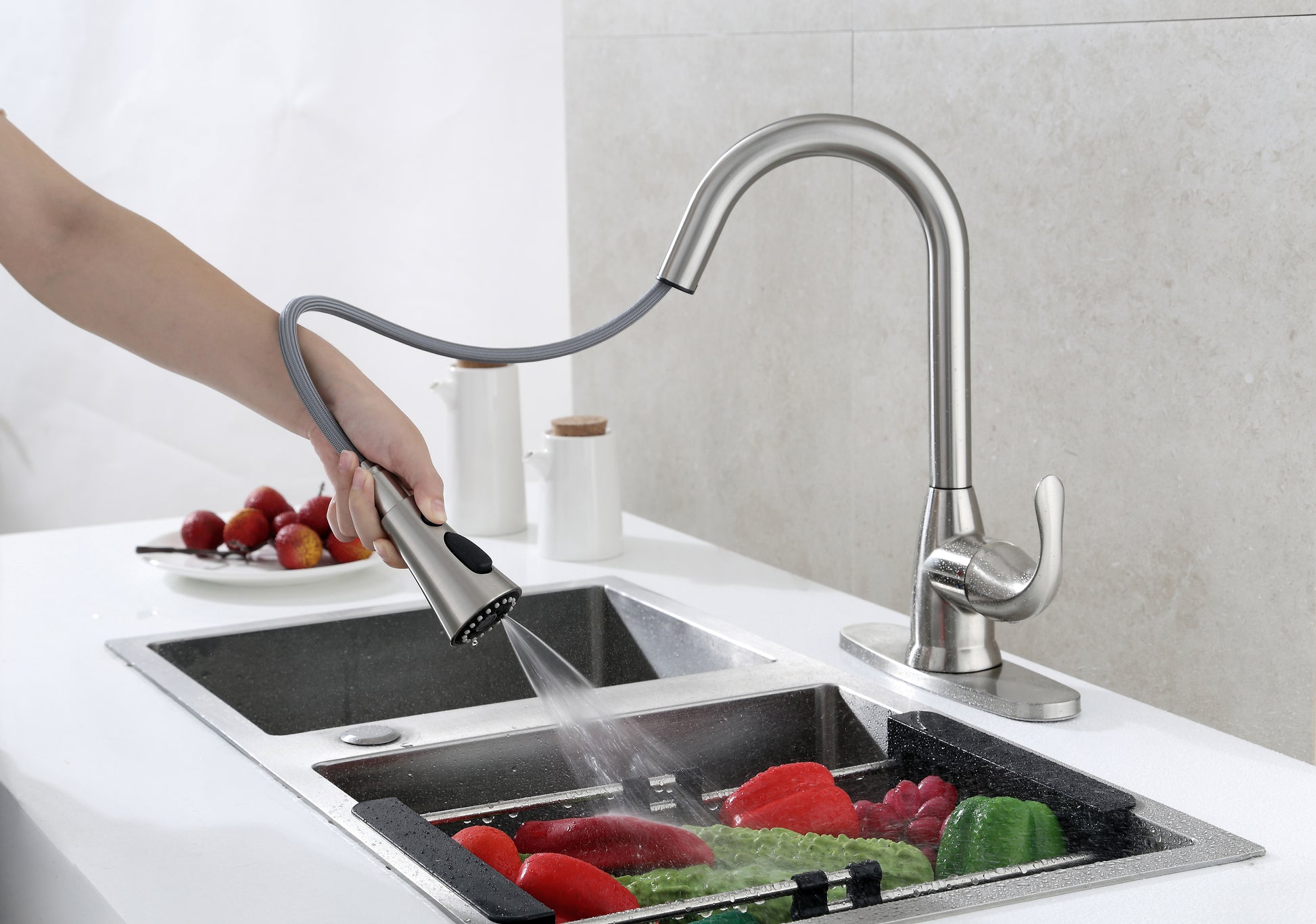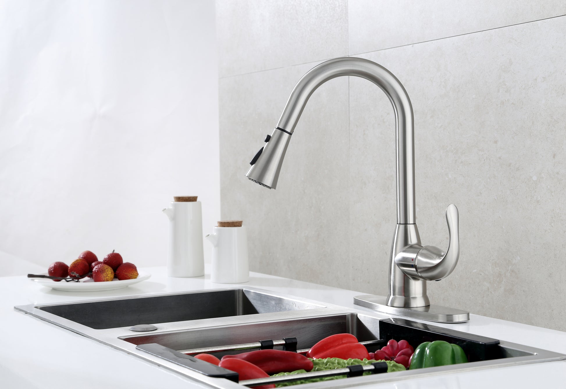 - Pull-down faucet with 59" anti-twist hose, with 20" reach