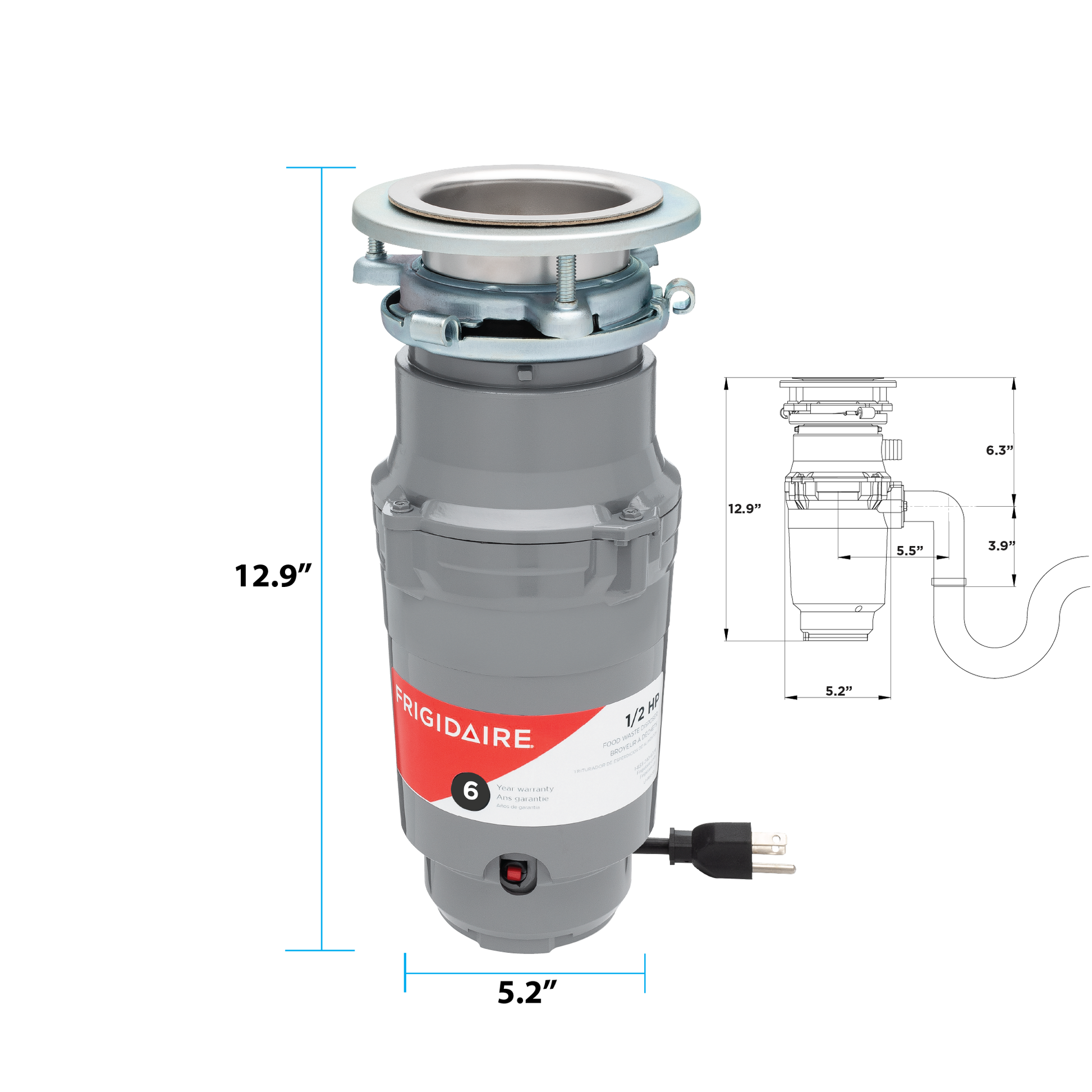 1 x Frigidaire 1/2 HP Food Waste Disposer Horsepower claimed on package does not indicate motor output or motor power applied for processing.